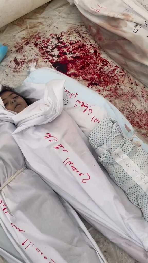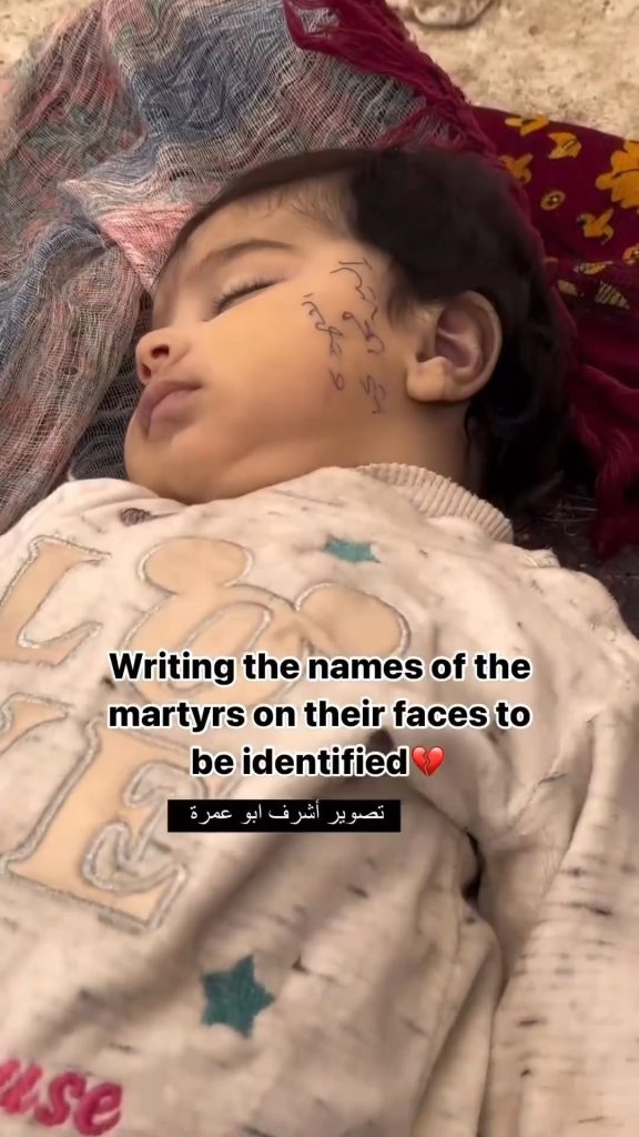 The child’s name is written on her face so that she can be identified / The world is silent against Israel’s crimes